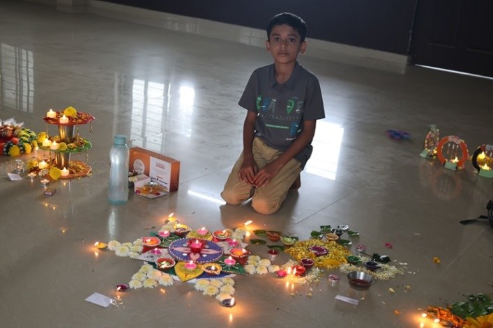 Aayush S Halijole 5A  Diya and Rangoli competitions were amazing we enjoyed Diwali and Karnataka Rajyotsava program