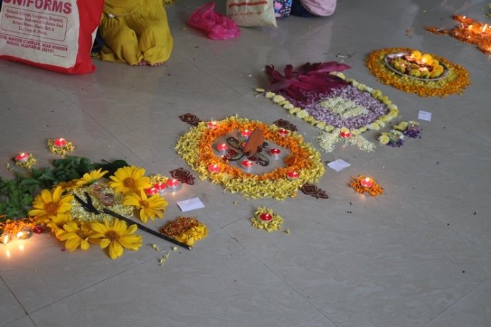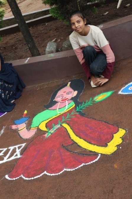 Kruthika Tuppad 7A  All the rangolis and diya's are beautiful made by are friends.