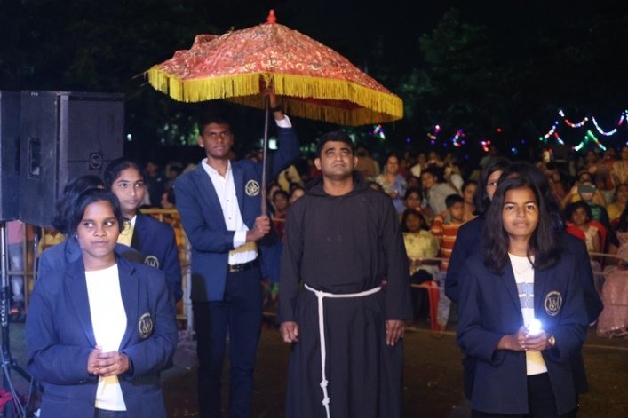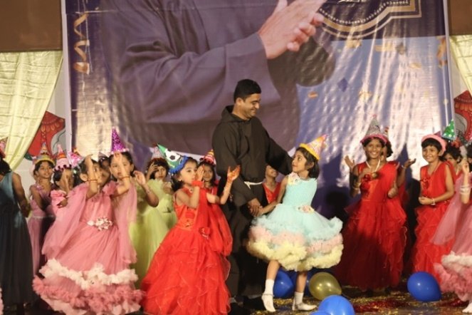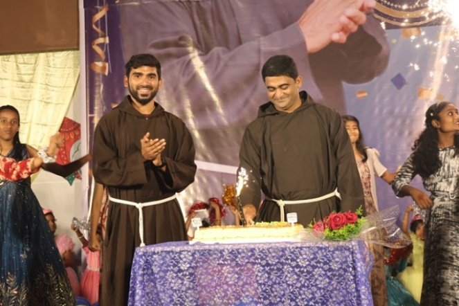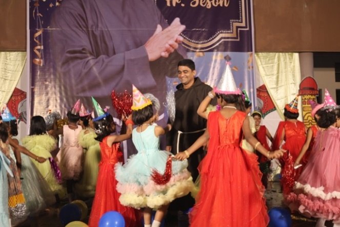 St. Francis of Assisi School celebrated the birthday of its Principal, Rev. Fr. Jeson Fernandez, along with Karnataka Rajyotsava on 1st November 2025. The students expressed their love and appreciation through delightful dance performances and a meaningful skit. The skit beautifully portrayed the life journey of the Principal, making the day truly memorable for him. The programme was graced by Mr. Gopal Krishna, DSP Chikodi, Mr. Nerli, PSI Chikodi, eight Sisters from Rajasthan, parents, teaching and non-teaching staff, and the students. In his address, the Principal expressed his heartfelt gratitude to everyone gathered for making the celebration special and memorable.