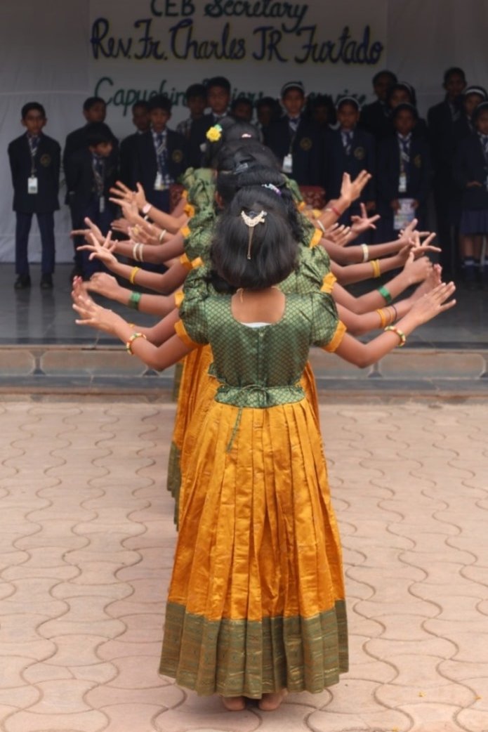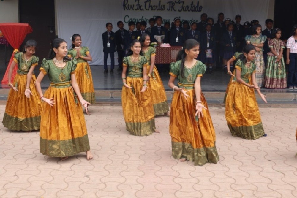 The program began with a grand welcome, accompanied by the school band and a shower of flower petals, for Rev Fr Charles John Roncally Furtado, Executive Secretary of the Capuchin Education Board. Our young dancers from 6th standard performed a beautiful welcome dance, showcasing their cultural heritage. The students then participated in the morning school prayer, seeking blessings for a fruitful day ahead. This was followed by a prayer dance by the students, invoking divine blessings for the gathering. Our Principal, Rev Fr Jeson Fernandez, delivered a welcome speech and introduced our esteemed guest. The students of 1st standard performed a skit, 'Peter and Wolf', showcasing their creativity and talent. β€œYou must be proud to be an Assisian” encouraged Rev Fr Charles J R Furtado as he shared his thoughts and insights with us, inspiring us to strive for excellence. The program concluded with a felicitation of our esteemed guest.