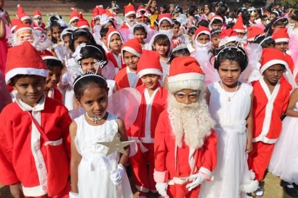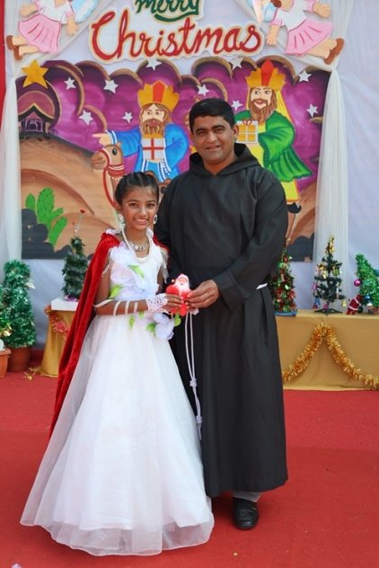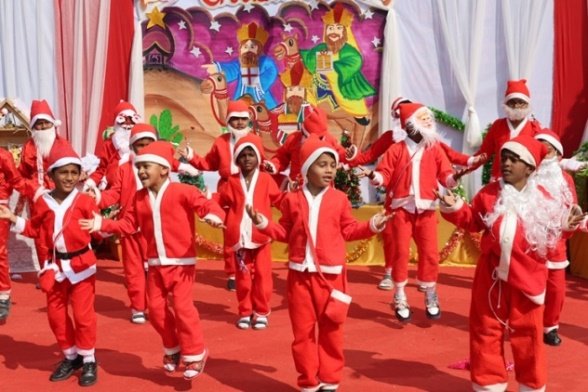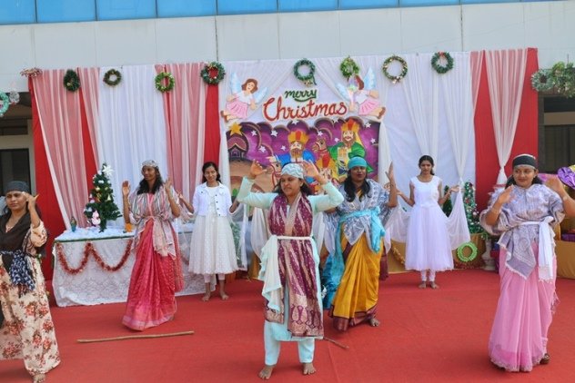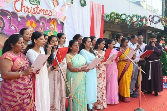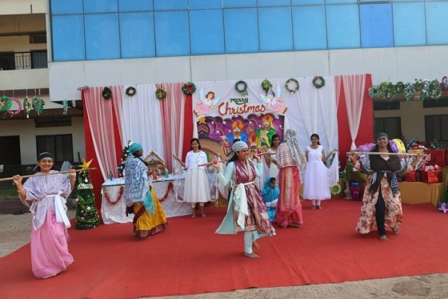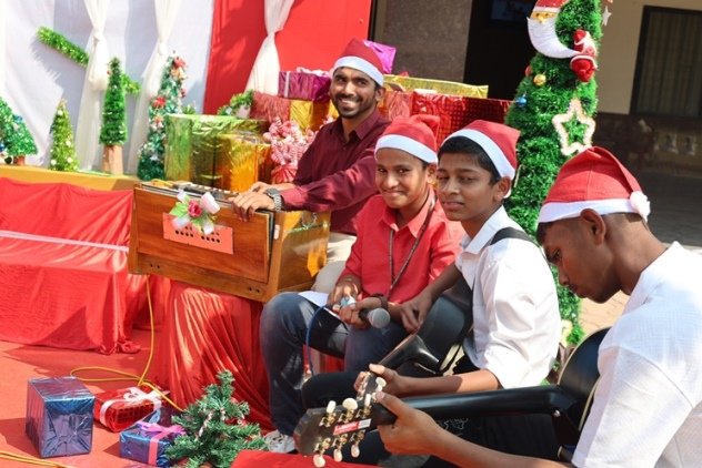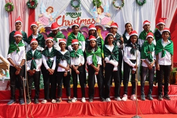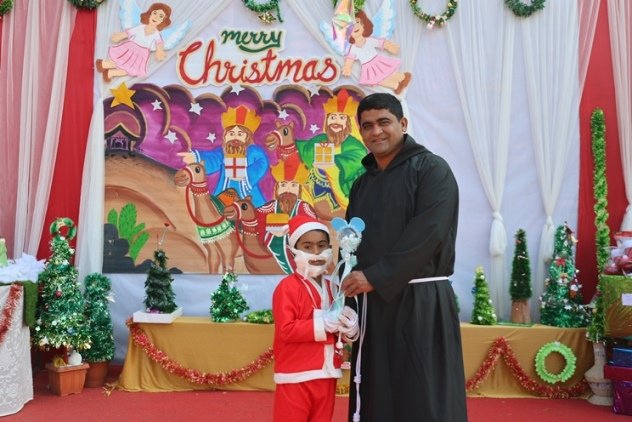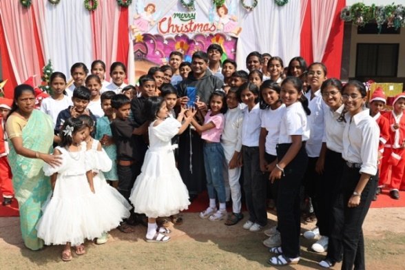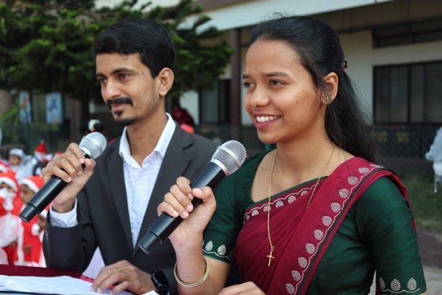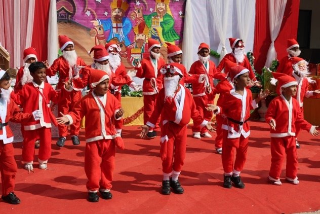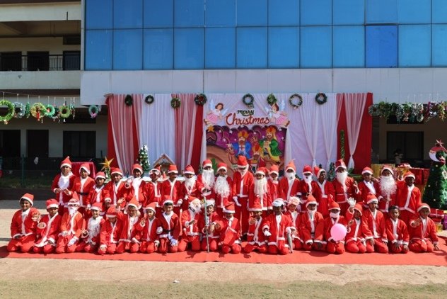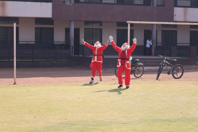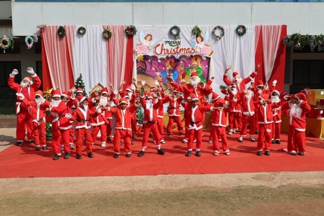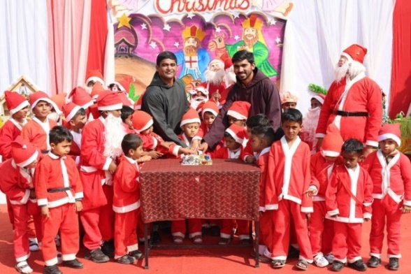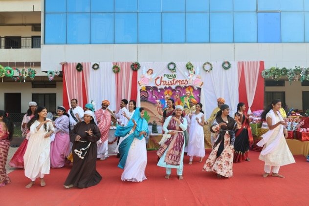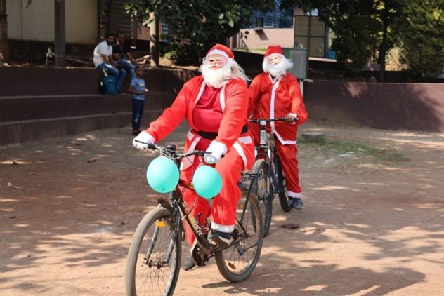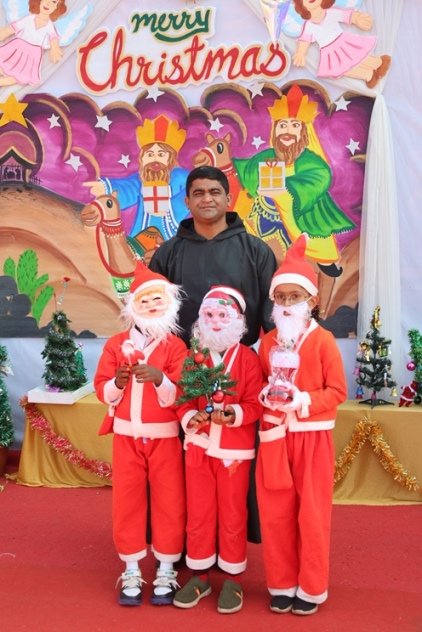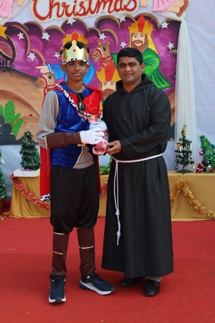 The real hero of rhe celebration Santa pedalled in, danced like he was on a Bollywood set, and handed out hugs like they were going out of style. Kids screamed and teachers cheered at his dance. Next the Christmas cake was cut along with Santa by Principal and vice principal. All were given the cakes and juice and shared the joy of Christmas. Principal, Fr. Jeson Fernandez delivered a heartfelt Christmas Message, reminding us that the true gift is love, kindness, and the joy of togetherness.