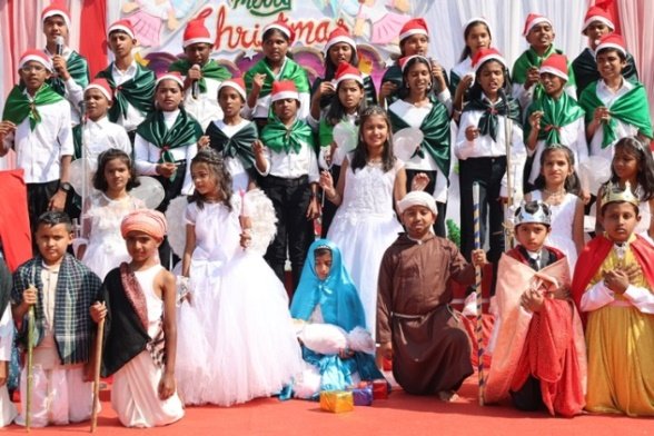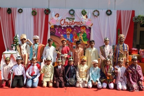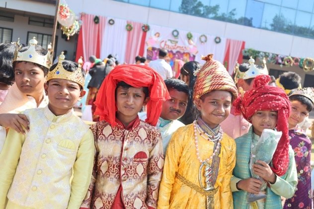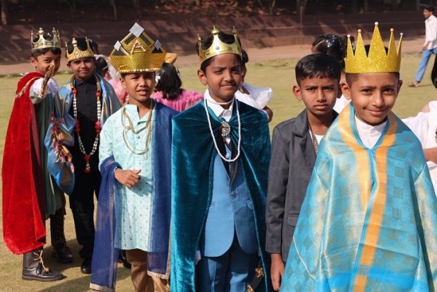 The air crackled with festive magic as our school transformed into a winter wonderland โ not with snow, but with glitter, giggles, and the soulful hum of carols echoing under the open sky. The celebration kicked off with a soul stirring Carol Singing by our dedicated teachers, their voices weaving a tapestry of warmth that set the tone for the day followed by the grandest moment the Christmas Tableau. Teachers brought to life timeless nativity scenes with such grace and sparkle, it felt like stepping into a storybook. Little ones from Nursery to Class 2 turned into adorable Santa Clauses and Angels, twirling, smiling, and stealing hearts with their tiny costumes. Meanwhile, the older kids from classes 3 to 7 dazzled in royal splendor as Kings and Queens, complete with crowns, capes, and proud postures fit for a kingdom.