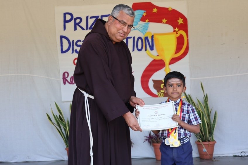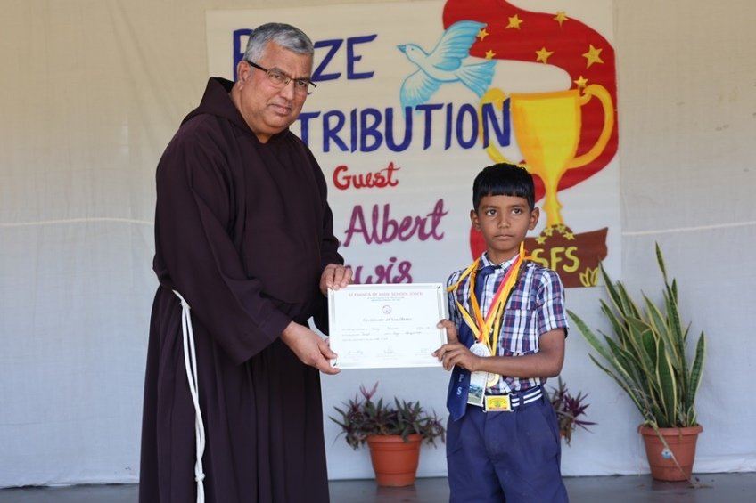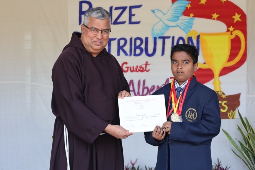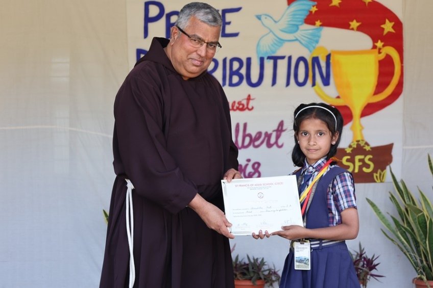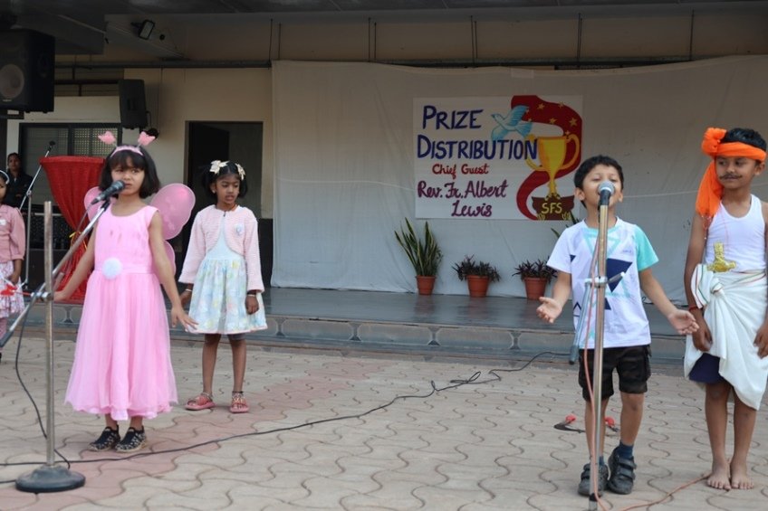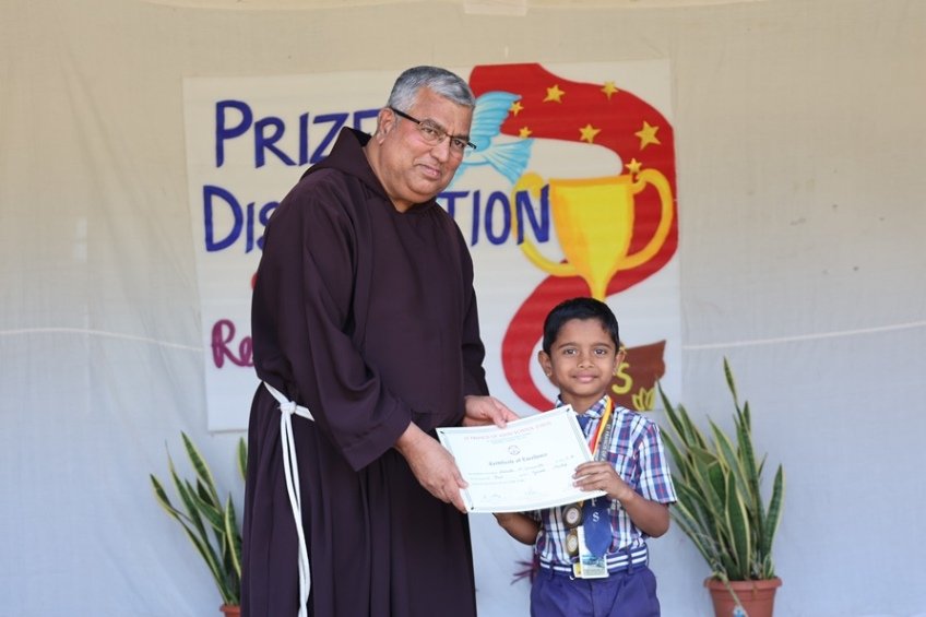 It was a truly special day to have Rev. Fr. Albert Lewis, professor of Systematic Theology, Darshan Institute of Theology, Bangalore, as our chief guest, gracing the event with his presence. 27th February, morning talented LKG students conducted prayer service and set the tone for a memorable celebration. Our Principal, Rev. Fr. Jeson Fernandez, warmly welcomed our chief guest and our Vice-Principal, Rev. Fr. Stanis Lopes, with a beautiful bouquet of flowers. This was followed by a delightful skit, "The Golden Egg," performed by our adorable 1st std students. Their energy and enthusiasm left us spellbound! The chief guest, Rev. Fr. Albert Lewis, addressed the students and delivered an inspirational speech that left all motivated and inspired. Thereafter, winners of various co-curricular activities, held in the academic year were awarded with medals and certificates by the chief guest. Students were thrilled to receive honours of their hard work and dedication.