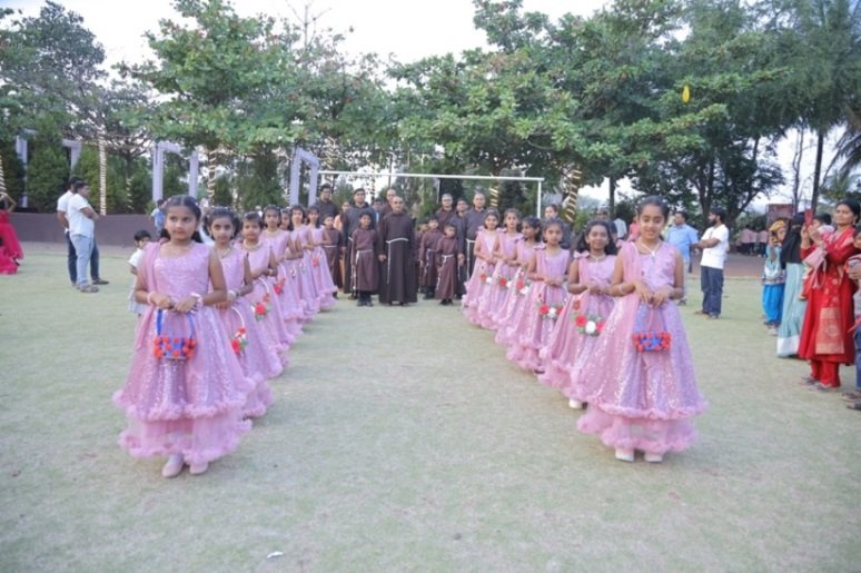 Provincial, Holy Trinity province, Karnataka, Rev. Fr. Paul Melwyn D'Souza, Vicar Provincial, Holy Trinity province, Karnataka. Rev. Fr. Charles JR Furtado, Executive Secretary of Capuchin Education Board, Bangalore. Rev. Fr. Santhosh Naveen D'Souza, Rector Darshan Institute of Theology, Bangalore. Rev. Fr. Maxim D'Silva, Administrator of Holy Trinity province, Karnataka. Rev. Fr Vincent D’souza, Director of Vimukti Social Centre, Chikodi, Rev Fr Pradeep Kumar, Principal, St Francis De Sales, Kadgoa, Rev Fr Kishore Kindo, Kadgoa, Rev Fr Vicky Mendes, Parish Priest St Milagris church, Goutan, Rev Fr Santa Remend SDB Sankeshwar, Rev Fr Vicky D’souza SDB Sankeshwar and Rev Sr. Lourd Mary and Rev Sr. Celestine, Jyothi Nilaya, Chikodi, with little capuchins and our 49 students of 10th, followed by their parents with the school band. A captivating cultural performance was held by the students. We had couple of dances like the folk dance showcasing rich cultural heritage, carnival to groove us up, horror dance quite spooky, Bengali dance to feel the touch of beauty. This is the 800th year of St Francis of Assisi, hence we had a small skit on " Francis and the Three Robbers". We welcomed our 10th standard students with special gesture with gifts and flowers. We also felicitated our national awardees, our teachers and ancillary staff who rendered their 10 years of service to this institution and showed our honour, respect and gratitude towards our President by felicitating him with a shawl, garland and memento. He also graced the occasion with his presence by delivering an inspirational speech, motivating the students and parents to strive for success.